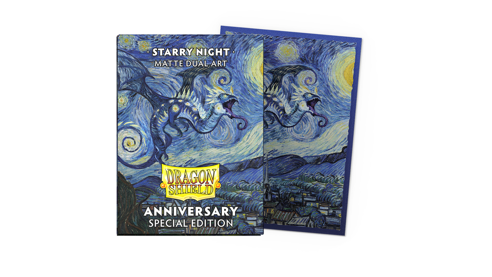 In honour of Dragon Shield's 25th anniversary, the forge has released a stunning treat for the art community: the matte dual art sleeve featuring Starry Night and Great Wave. This special edition sleeve is re-imagined with beautiful silver details for fans of the matte dual sleeves.